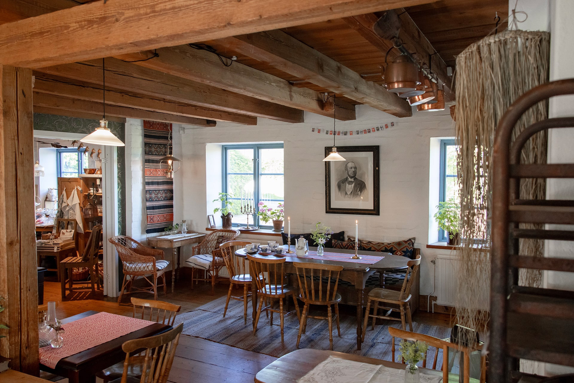 I Kaffestugan finns två gemytliga lokaler, där de gamla takbjälkarna och allmogemiljön skapar en varm och levande inramning för er tillställning.