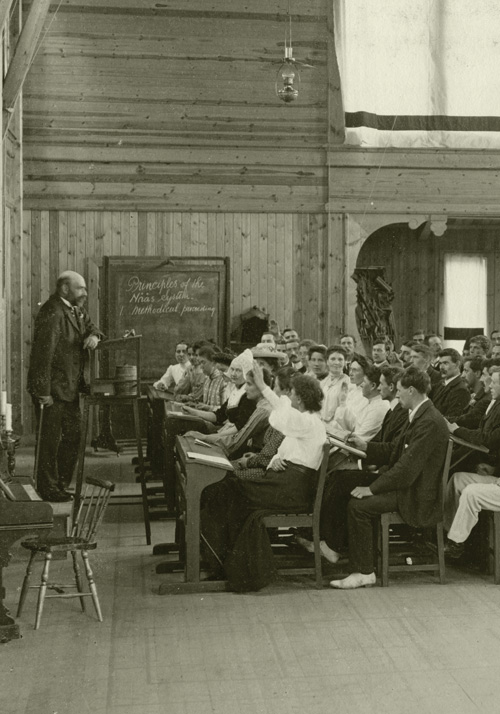 Lekhuset uppfördes 1905 för lek- och danskurser vid Nääs slöjdseminarium. Den imponerande takhöjden och bevarade inredningen gör byggnaden unik. Salen kan delas av med draperi och har en scen för musik eller tal. Från inomhusbalkongen får man en vacker vy över festligheterna.