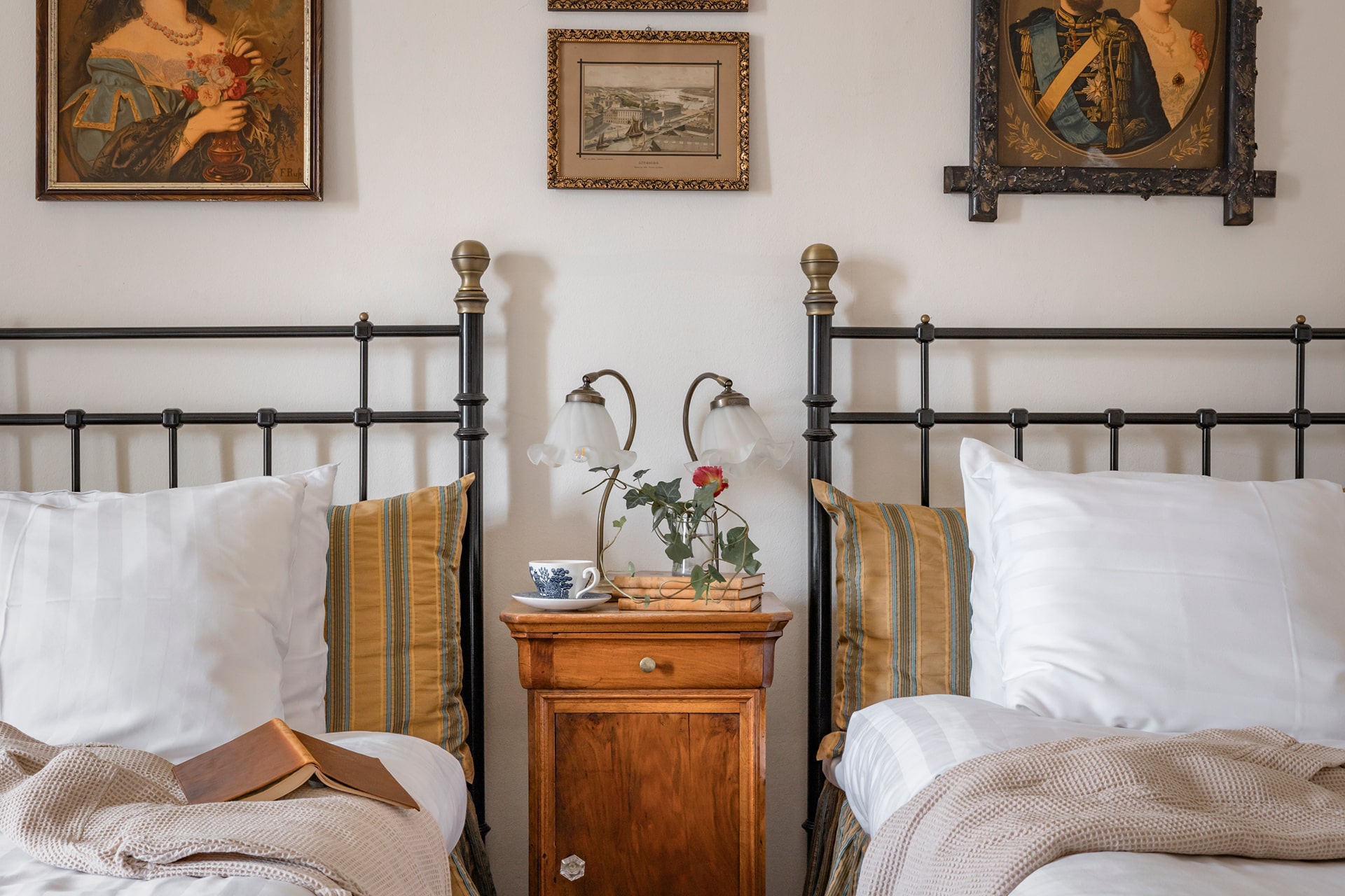 Två av dubbelrummen kan öppnas upp och bilda ett familjerum med plats för fyra personer, fördelade på två dubbelsängar.